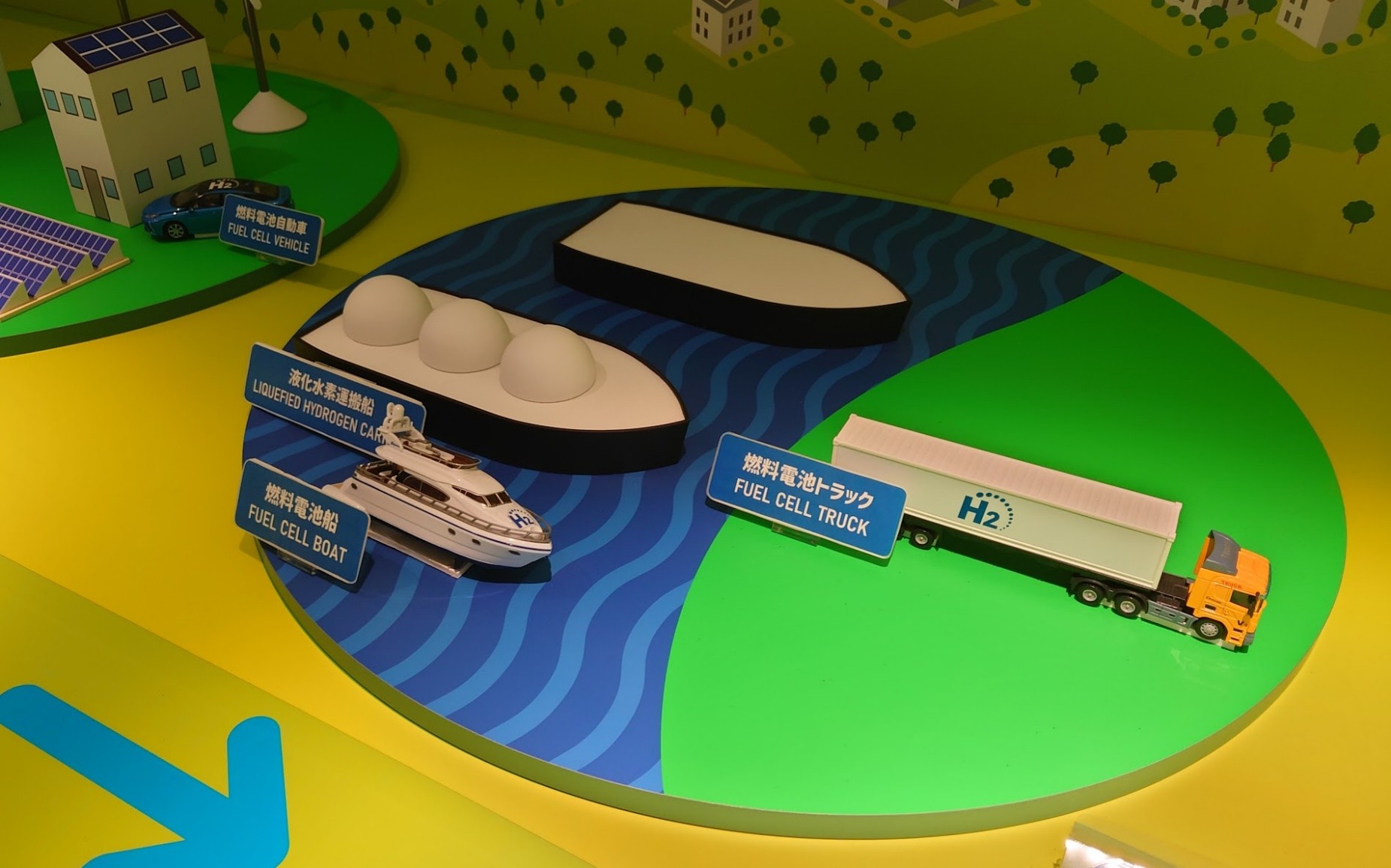 東京スイソミルでは燃料電池自動車MIRAIの展示をはじめ、FCスタックの実物展示や水素をつかうモビリティ社会の解説展示を楽しむことができます。