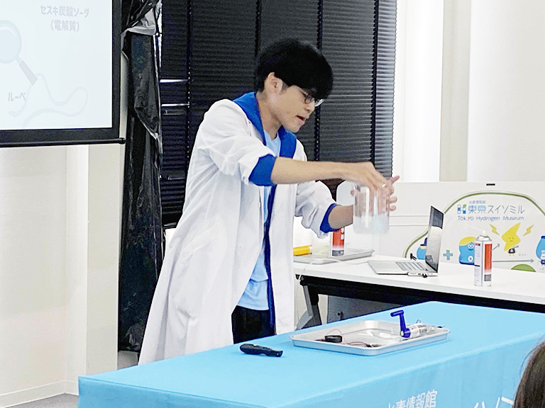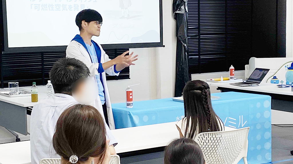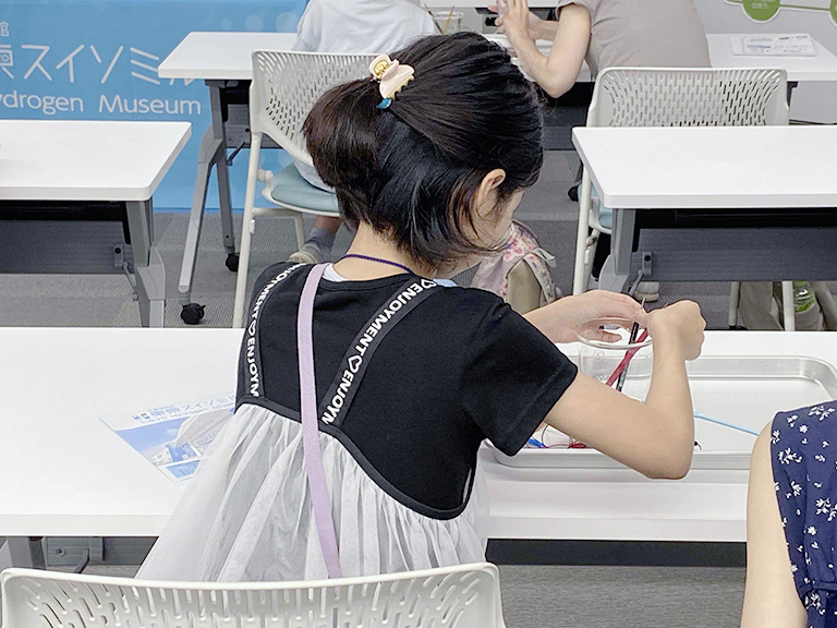 水素の基本、水素のチカラを知って体感するワークショップの第1弾は、水の電気分解実験で「水素のつくり方」を学ぶ90分のプログラム。