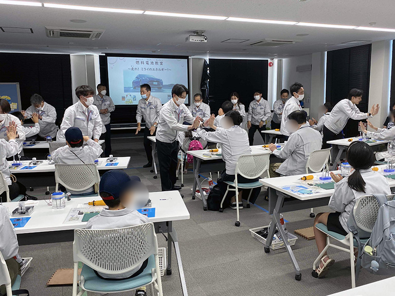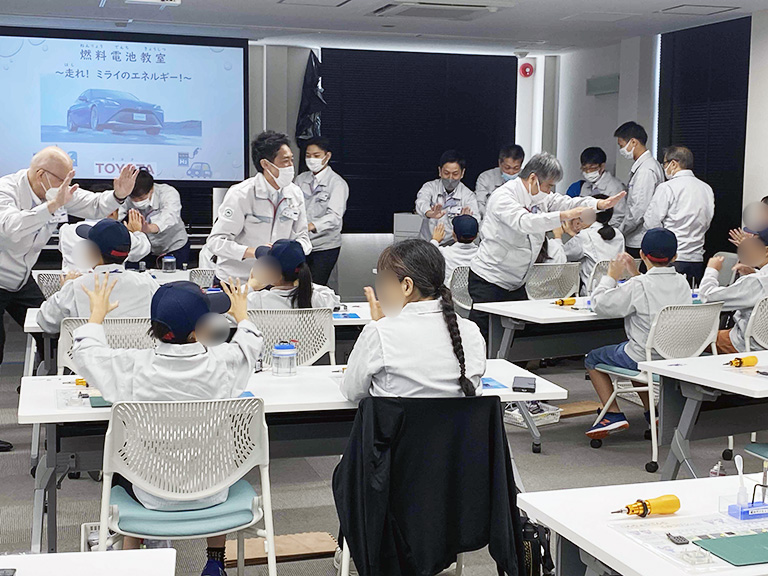 2023年から3回目を迎えるTOYOTA FC製造チームによる燃料電池教室。今回は2日間で59組118名の方が参加されました。FC製造チームが醸し出す楽しい雰囲気、親切で分かりやすい解説で水素エネルギーや燃料電池に対する高い理解を得ることができました。