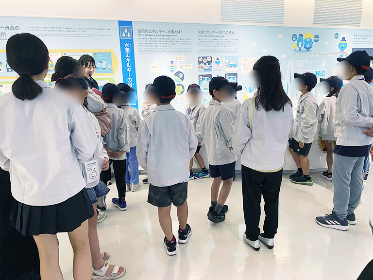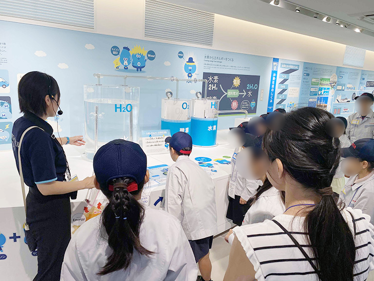 ワークショップでは組立部材のひとつひとつの機能が丁寧に説明され、標準化された手順に従って誰もが簡単に組み立てができるよう工夫されていました。燃料電池をモデルカーに搭載する前の点検工程もプログラムのひとつとして体験でき、工場の現場さながらのワークショップの完成度の高さに皆さま驚かれていました。モデルカーに搭載された小型の水素吸蔵合金は6リットルもの水素を搭載しているという説明に、水素の性質やその技術に驚かれる親子さんが多く見られました。
