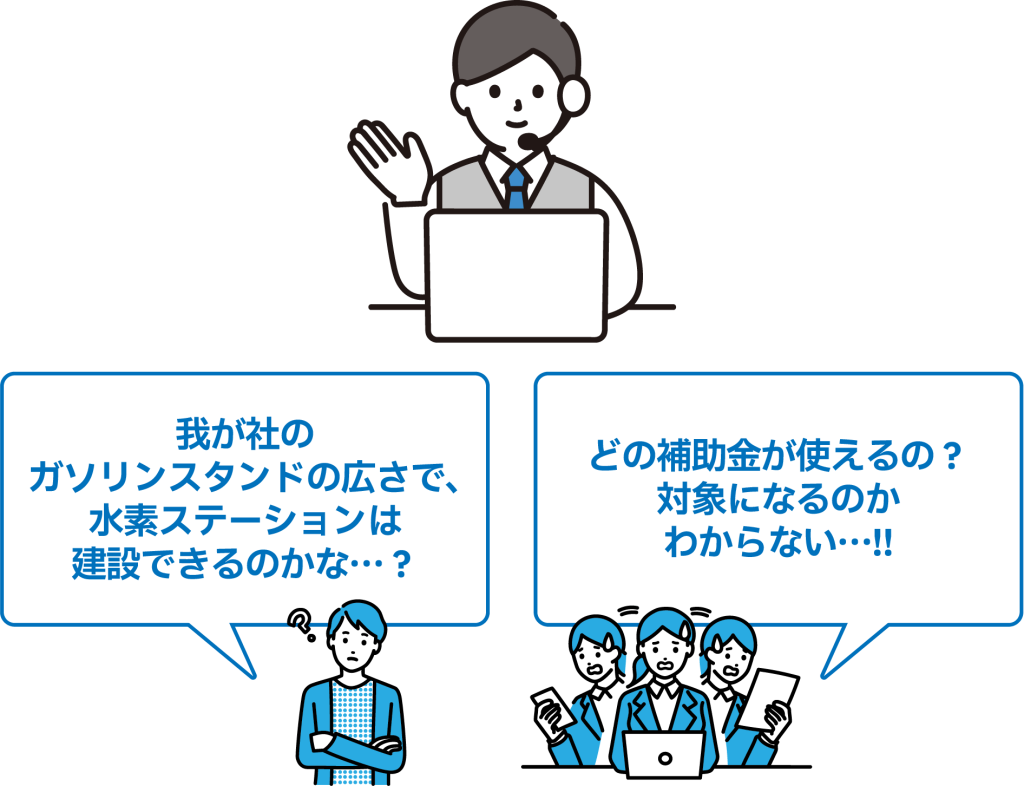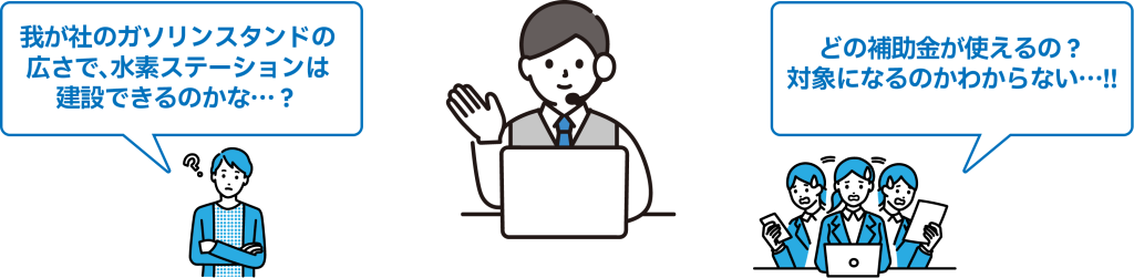 水素ステーション開設検討に係る質問や、運営に係る疑問解決にご利用いただけます。